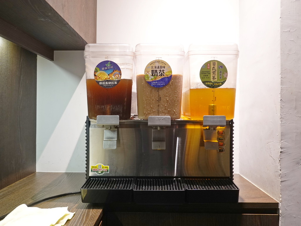飲料機有檸檬紅茶、奶茶跟煎茶可以取用,如果想更爽快點,可以點瓶裝可樂跟雪碧,罐裝氣泡感更強更新鮮,超級過癮。