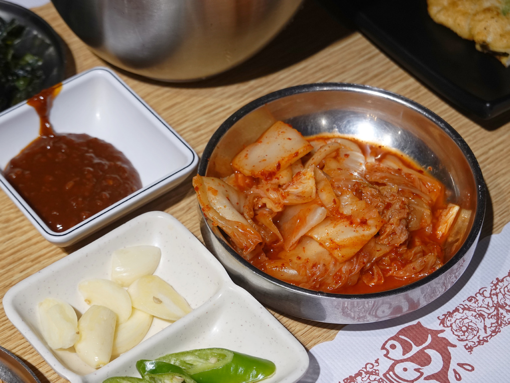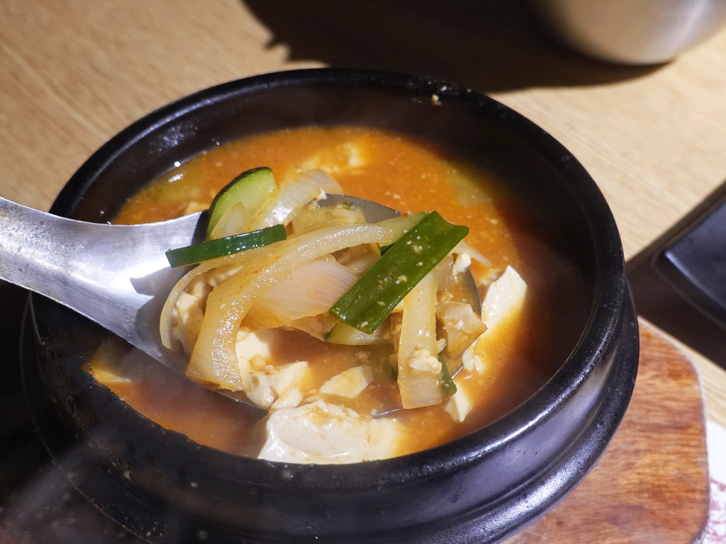 大醬湯就是韓國味噌湯,相較起一般喝到的味噌湯更為濃郁且帶有些微辣度,裡頭有豆腐、洋蔥、櫛瓜等食材,在瘋狂吃肉後喝上一碗熱湯,倒是覺得挺不賴的。