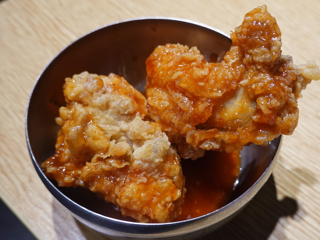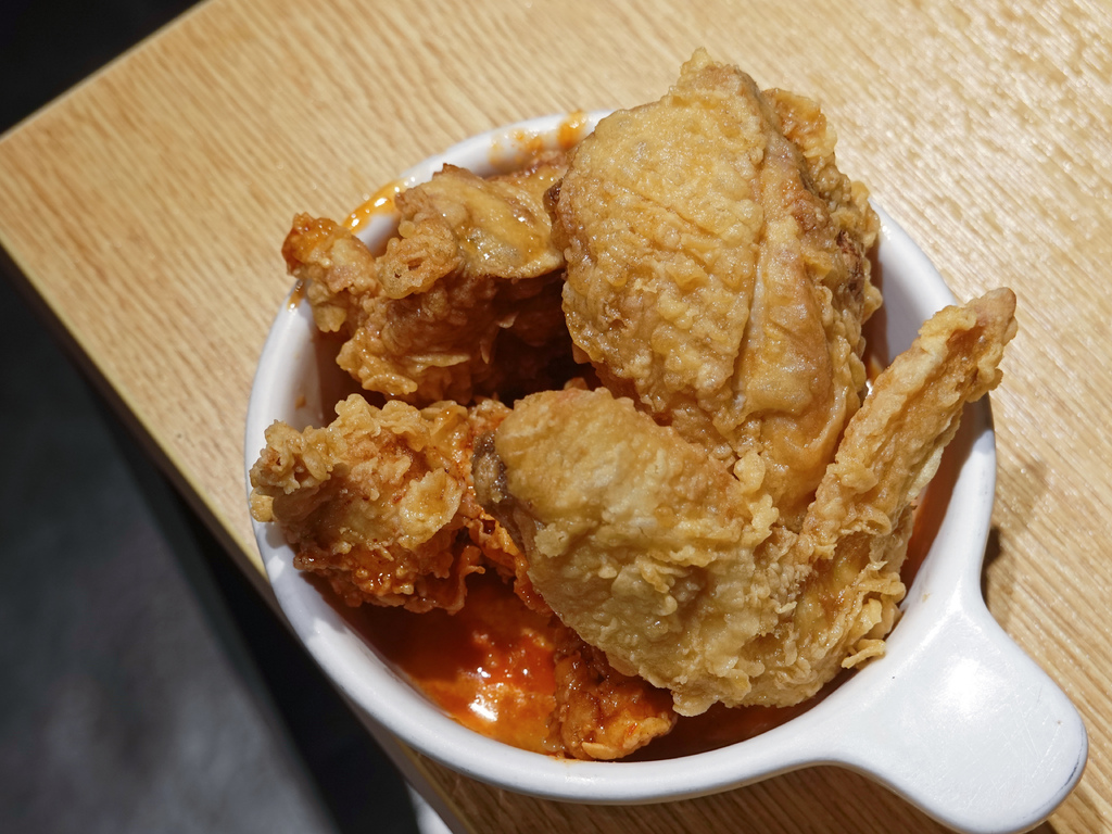 更讚的是,這裡的炸雞是現炸,一咬下超燙超多汁,外皮酥脆內裡軟嫩,相較起來我更喜歡洋釀口味,甜辣口味很過癮,忍不住又再點了一份。