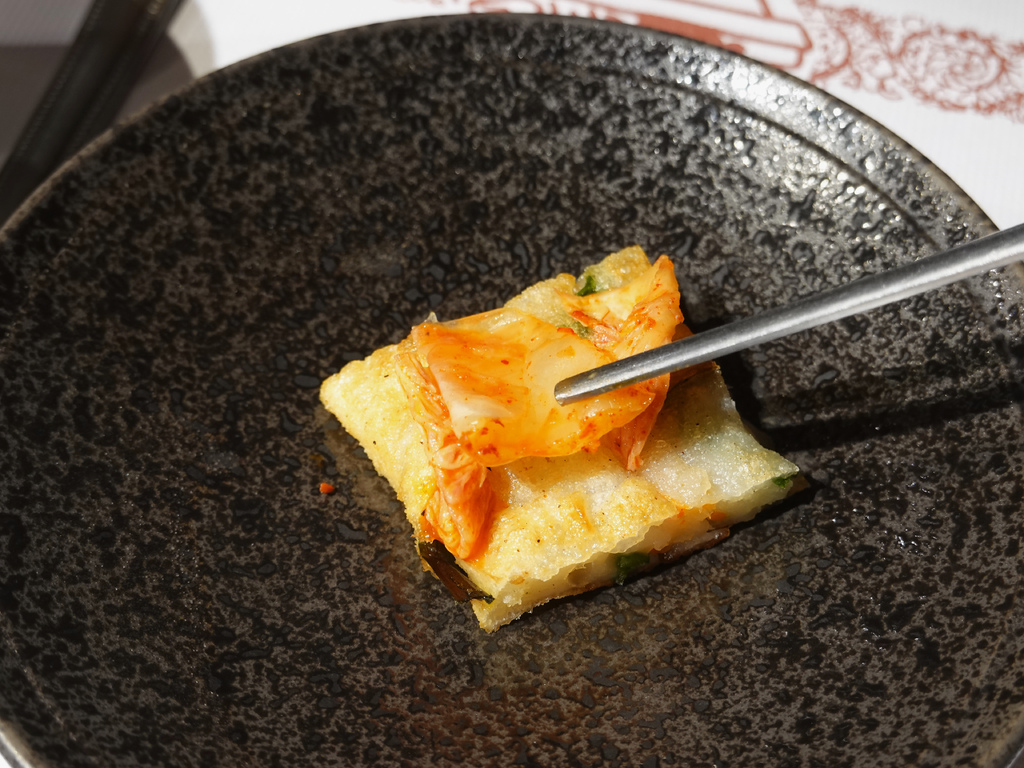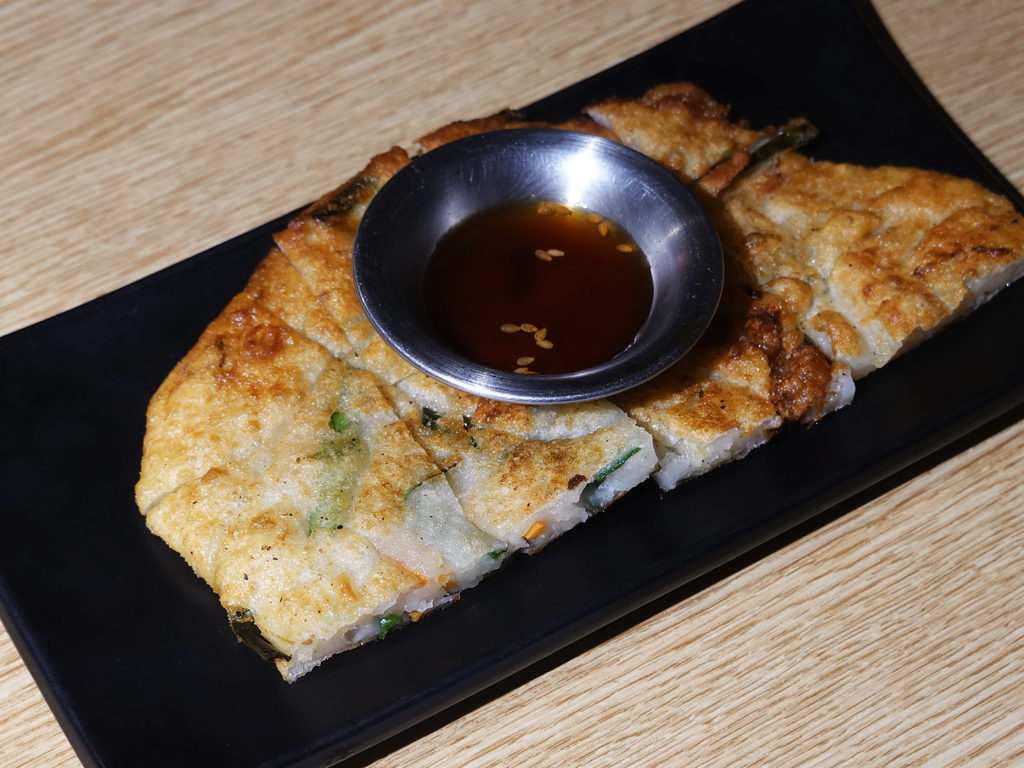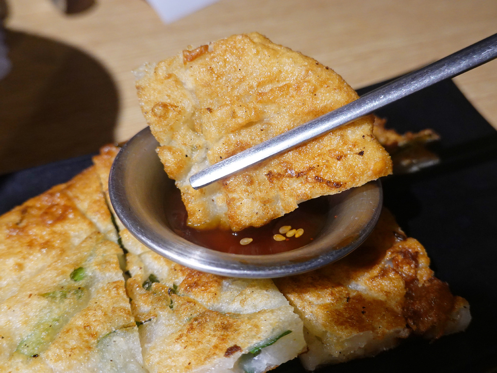份量很貼心的只給半片,煎餅外酥內Q,而且沒有我最怕的油耗味,吃起來意外清爽,甚至比起許多韓式小店要來得好吃,沾上特調醬汁超級涮嘴,推薦。