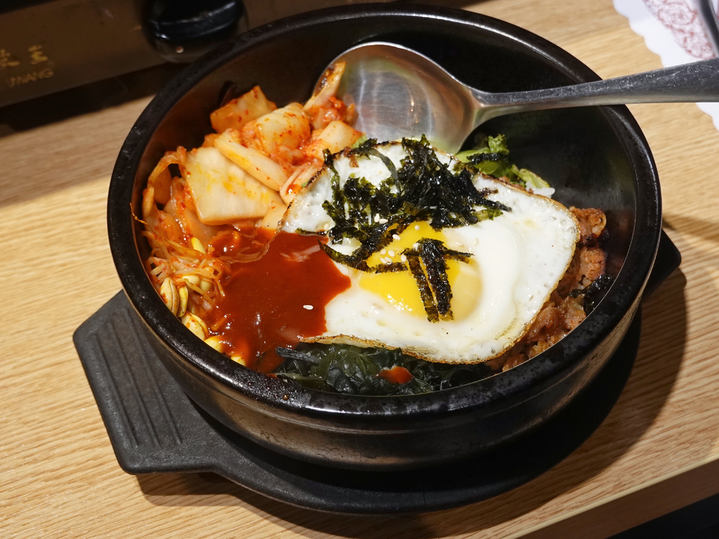 必須說,這的石鍋拌飯拿到韓式餐廳單獨販售是完全沒問題,用料絲毫不馬乎,各式配菜、肉片鋪得滿滿,上頭還有必備的半熟蛋。