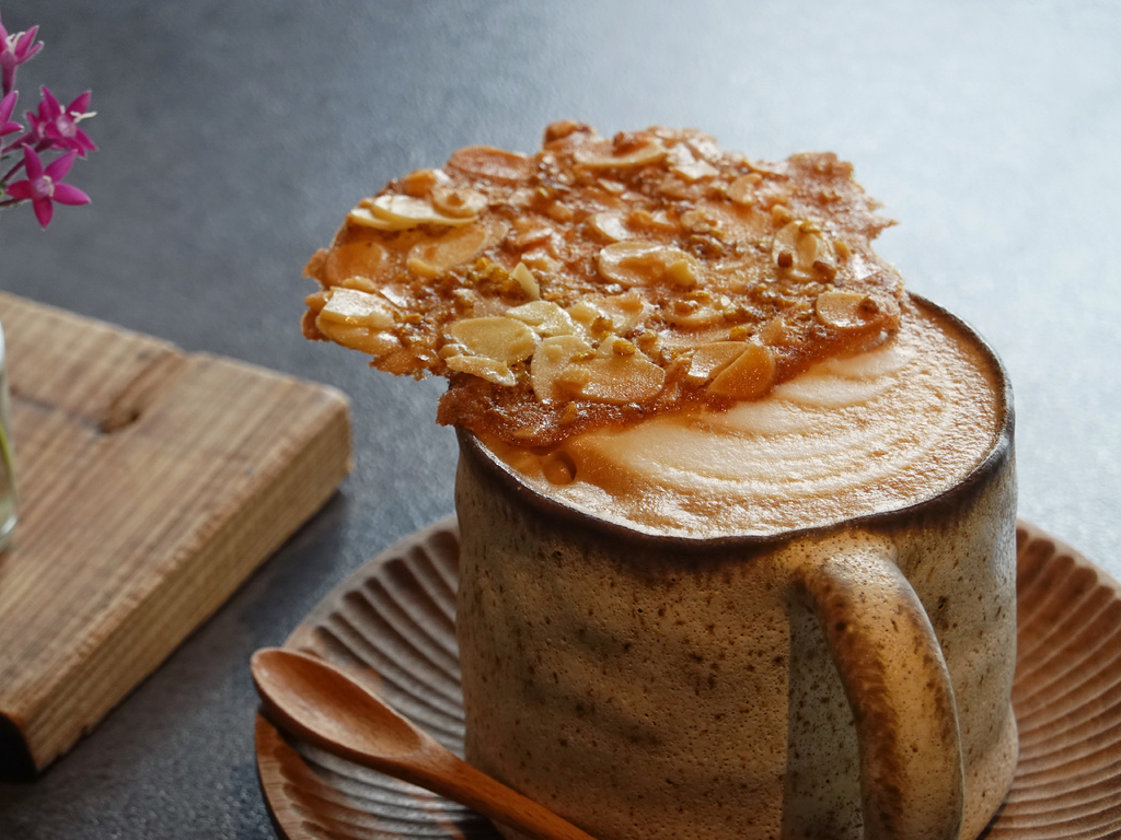 香濃溫醇的拿鐵,上頭還有杏仁瓦片搭配食用。而這杯皿拿起手感極好,喜歡這種手作溫暖感。