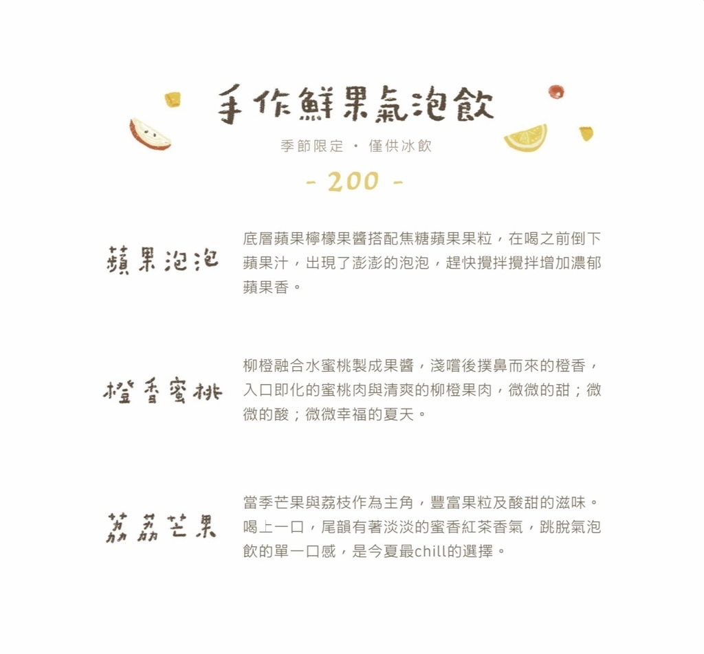 將蘋果檸檬果醬加上焦糖蘋果,還有清涼感十足的氣泡水,就完成了這杯新鮮且天然果感十足的蘋果氣泡飲。