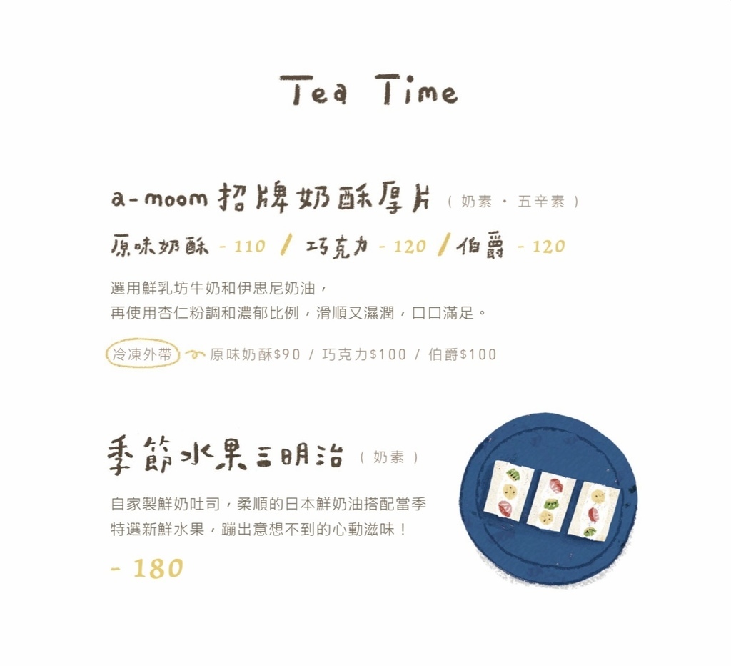 「李克承博士故居 a-moom」使用自製鮮奶吐司包裹日本鮮奶油,搭配奇異果、香蕉、草莓,一上桌我們一行人異口同聲驚呼:好可愛!