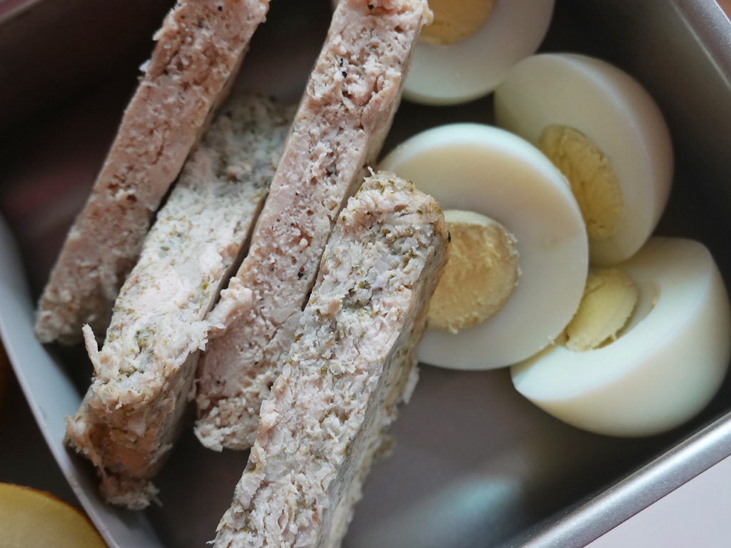 豬肉原味本來就是我最喜歡的口味,脆脆的藕丁跟低脂豬絞肉很合拍,吃起來是純粹的扎實肉感;雞肉蔬菜則是以雞胸肉作為基底,加入紅蘿蔔、玉米粒等蔬菜增添纖維,帶有自然蔬菜甜味,熱量則是所有口味最低。