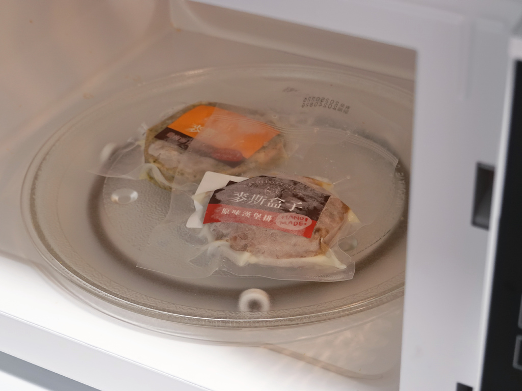 減醣漢堡排可以使用微波爐、電鍋以及隔水加熱,我自己比較習慣用微波爐,因為時間最為快速。在真空包裝剪個缺口,以我家中強火火力,大概微波2-3分鐘就能食用。
