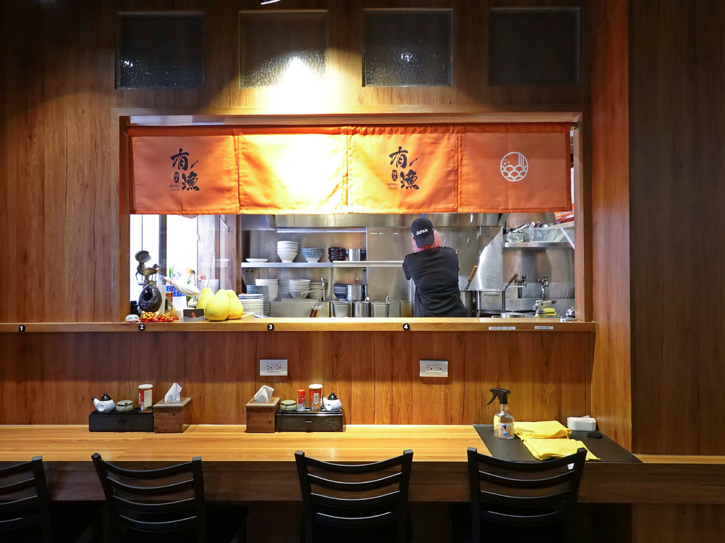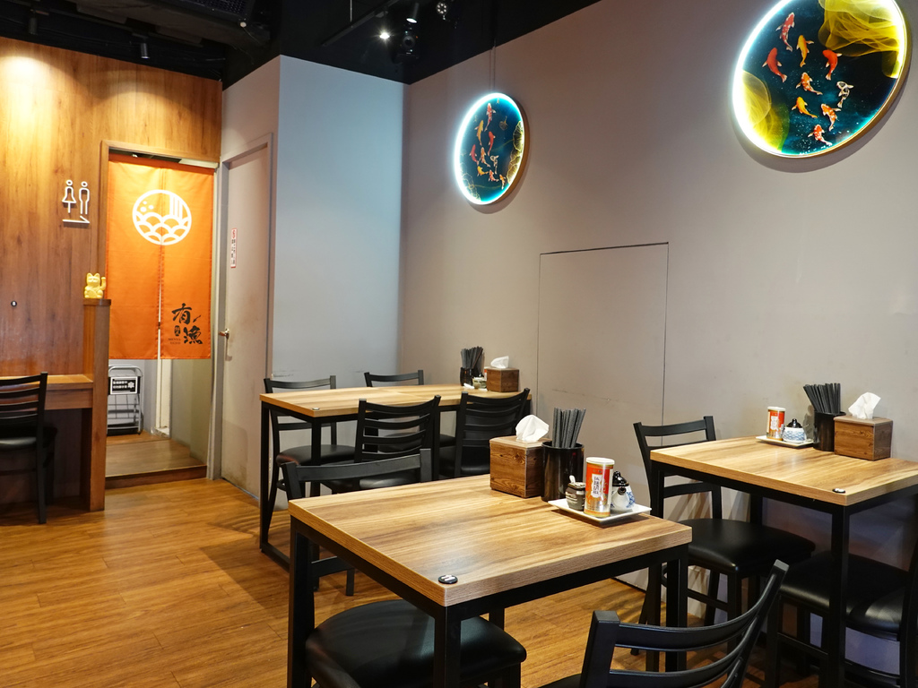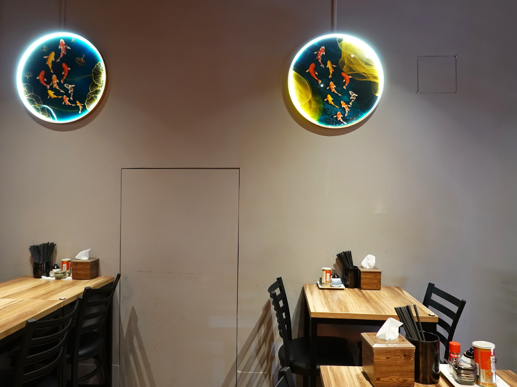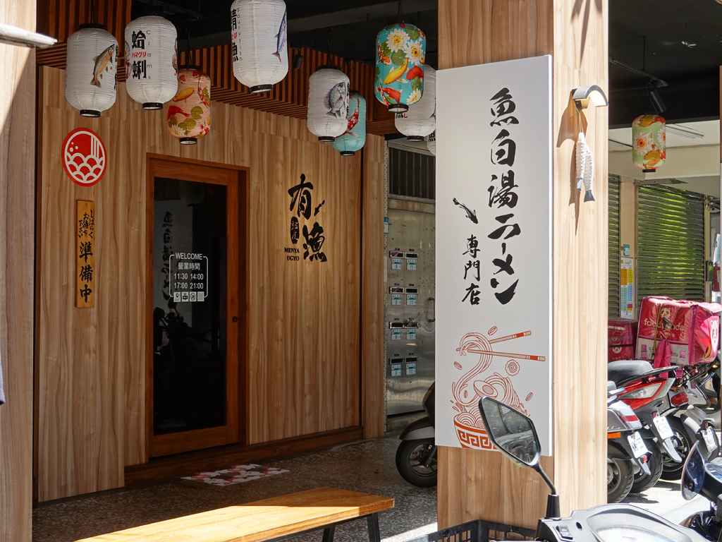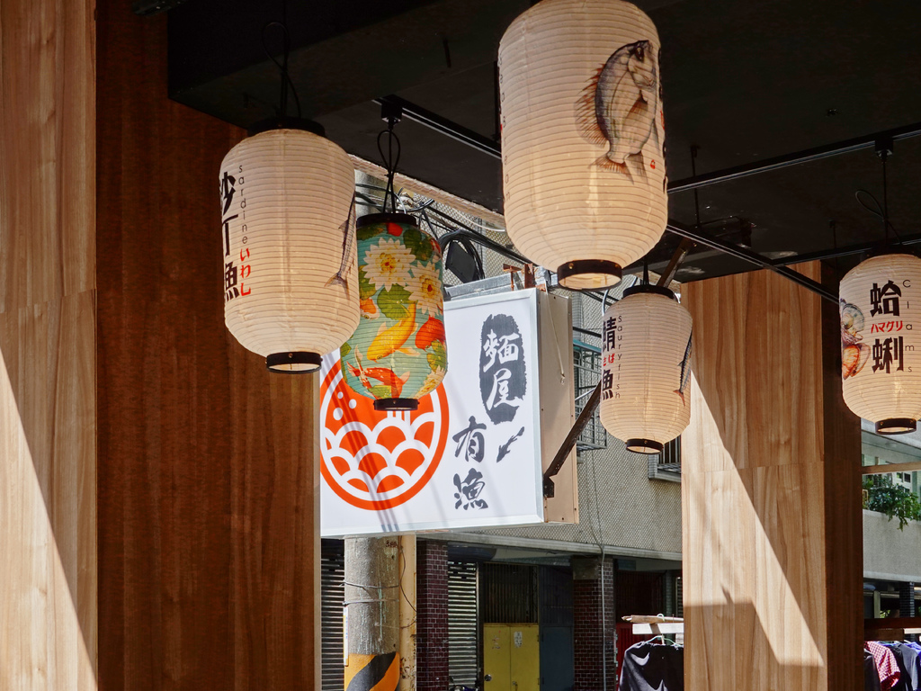 我挺喜歡「麵屋有漁」的門面,吊掛的白燈籠不僅有著濃濃日式風情,上頭也畫著各式海鮮食材,從碗中的拉麵到裝潢,都與店名緊緊相扣。
