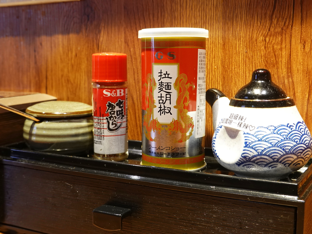 桌上也供蒜酥、七味粉、拉麵胡椒以及辣油,我個人最喜歡香氣十足的辣油,一點就能達到極佳的添味效果。