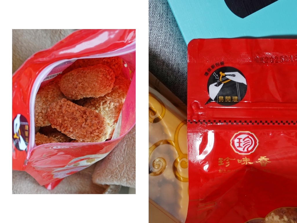 我一直都很愛芝麻口味,「珍味香餅家」的芝麻香氣較記憶中來得濃郁許多;花生口味是使用花生粒加花生粉,口感更有層次,當然香氣也是。口味甜度恰到好處,適合配咖啡或茶水,但單吃也不會過於甜膩,是我過年過節親友團聚會想要買來分享的小點心。
