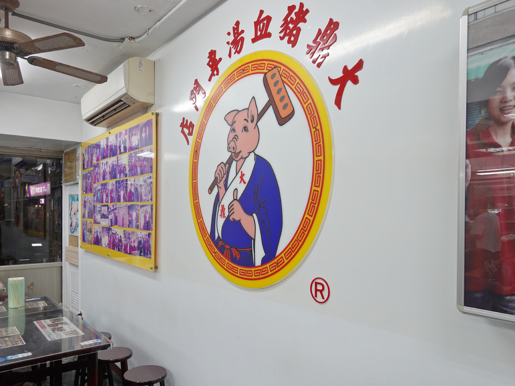 「大鼎豬血湯」從民國68年創立至今已近知天命之年,牆面與桌上滿是報章雜誌報導與名人合照,桌數不少,用餐人潮也不少,為了避免打擾到其他客人用餐,所以只簡單拍了商標。