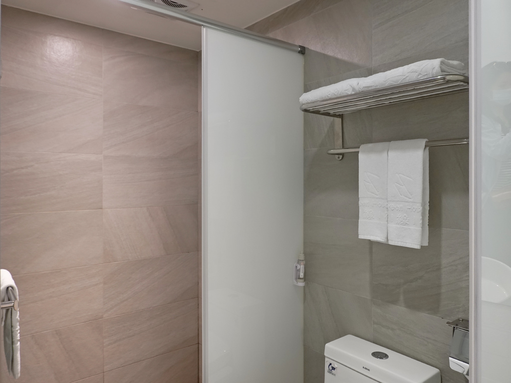 雖房內空間效益採最大值,但浴廁還是貼心的採分離式設計,並選用免治馬桶。