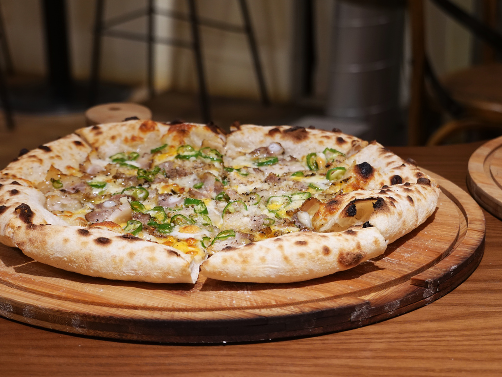 來這只點上一個披薩會後悔,而這招牌的馬告豬五花糯米椒,可以說是老闆研發的創新口味。