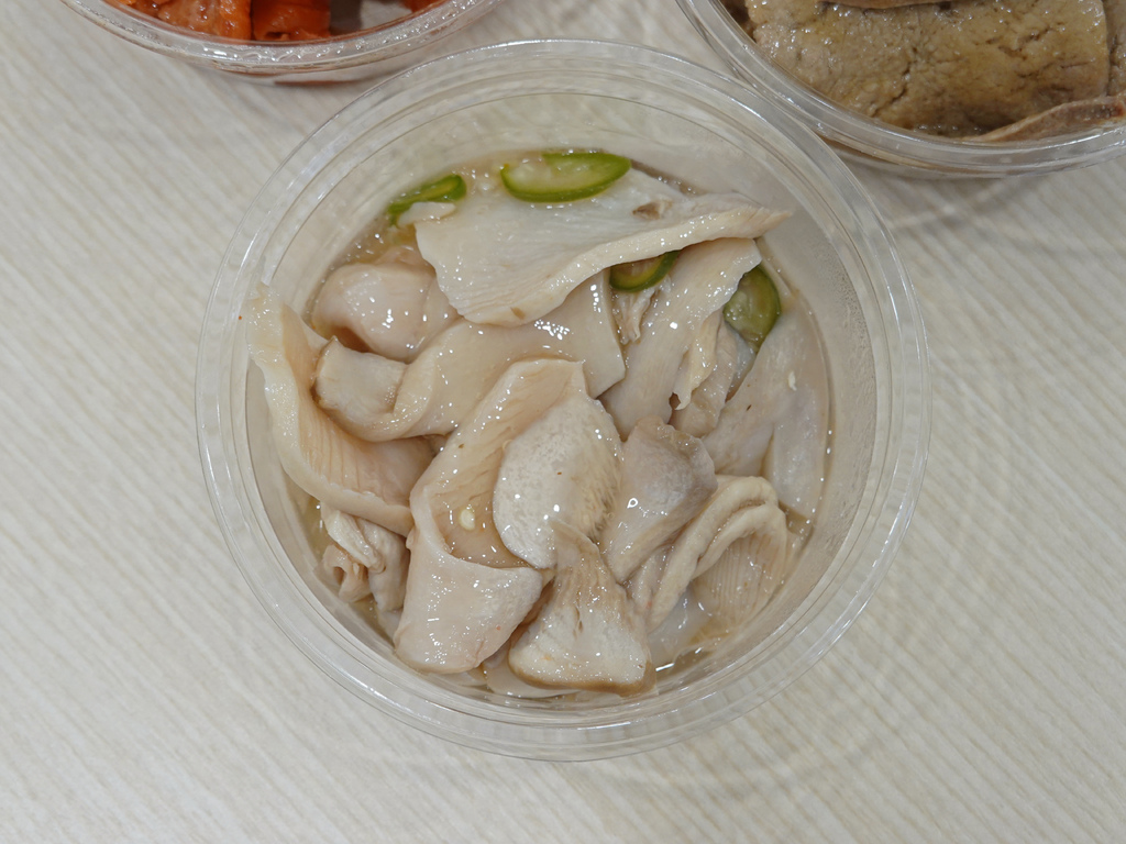 雖品名有唐辛子,但實際卻嚐不出辛香的調味,較像是杏鮑菇薄片,口味清淡。