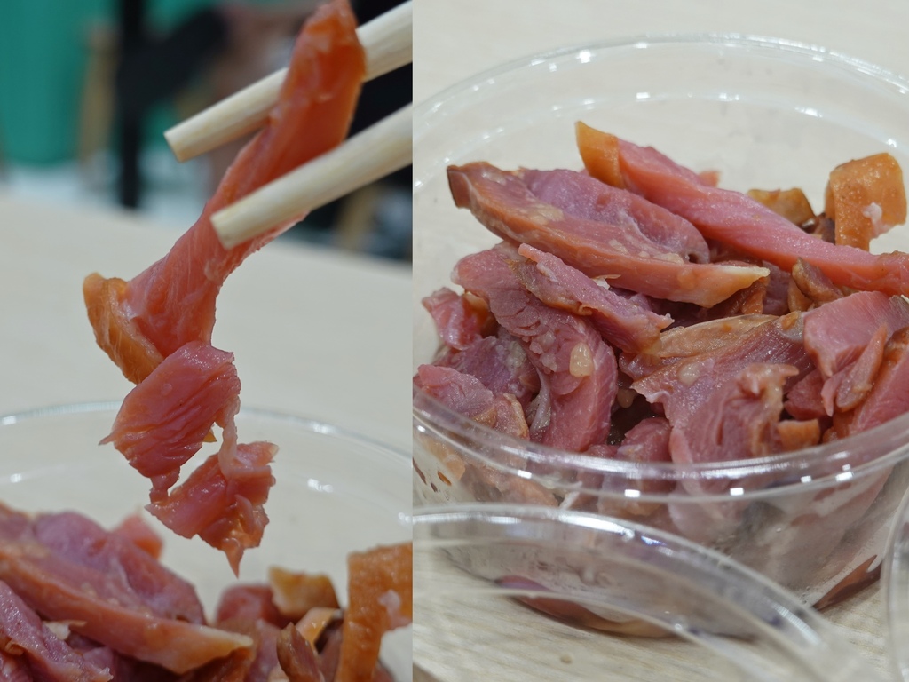 使用蔗燻製作的鴨肉,和鳳爪一樣是帶甜的滋味,細緻肉質中又帶有咬勁,很適合作為配麵的小菜。