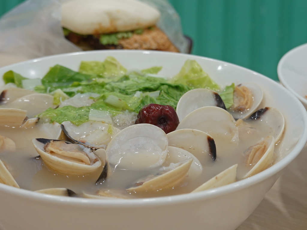 這一碗湯的食材很單純,就是蛤蜊、青菜、胡椒雞湯以及米粉,是很純粹的美味。