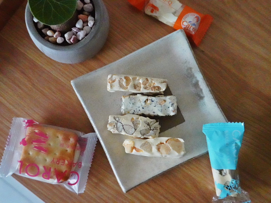 牛軋糖有四種口味,分別是最經典的花生,還有杏仁、夏威夷豆跟芝麻,每款都各有特色且深得我心,硬要選的話,我的最愛是芝麻口味,咬下滿口的芝麻跟花生,香味四溢。
