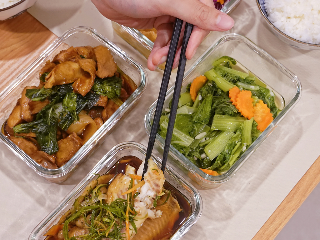 雖不是大魚大肉,但每道都是有溫度的家常菜,而且在營養均衡上也有顧慮到,蛋白質、蔬菜量都很均衡。如果要搭配白飯,附近便當店或是自助餐買上一份就可以,份量靈活又便利。