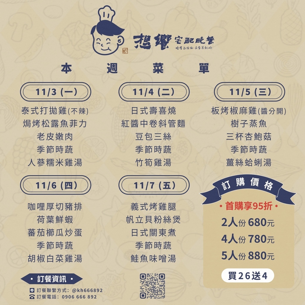「想饗宅配晚餐」讓忙碌的你也能輕鬆享受美味與健康。每日菜色變化多元,只要前一晚九點前下單,隔天就能在家品嚐由五星飯店主廚親手製作的精緻晚餐,是忙了一天工作、想好好吃頓飯的你,晚餐的好選擇。